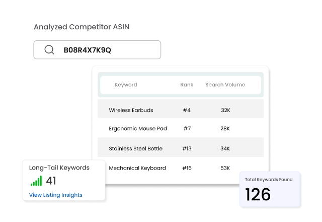 Reverse ASIN Lookup analyzes competitor ASINs to show the keywords they rank for, their performance, and potential buyer intent. This helps sellers notice gaps, discover long-tail keywords, and strategize better, ultimately driving improvements in both organic and paid performance.