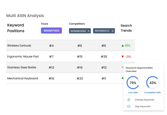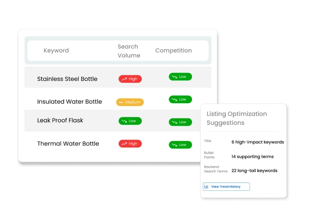 Analyze competitor keyword trends over time to predict future opportunities, optimize listings, and plan effective strategies for growth.